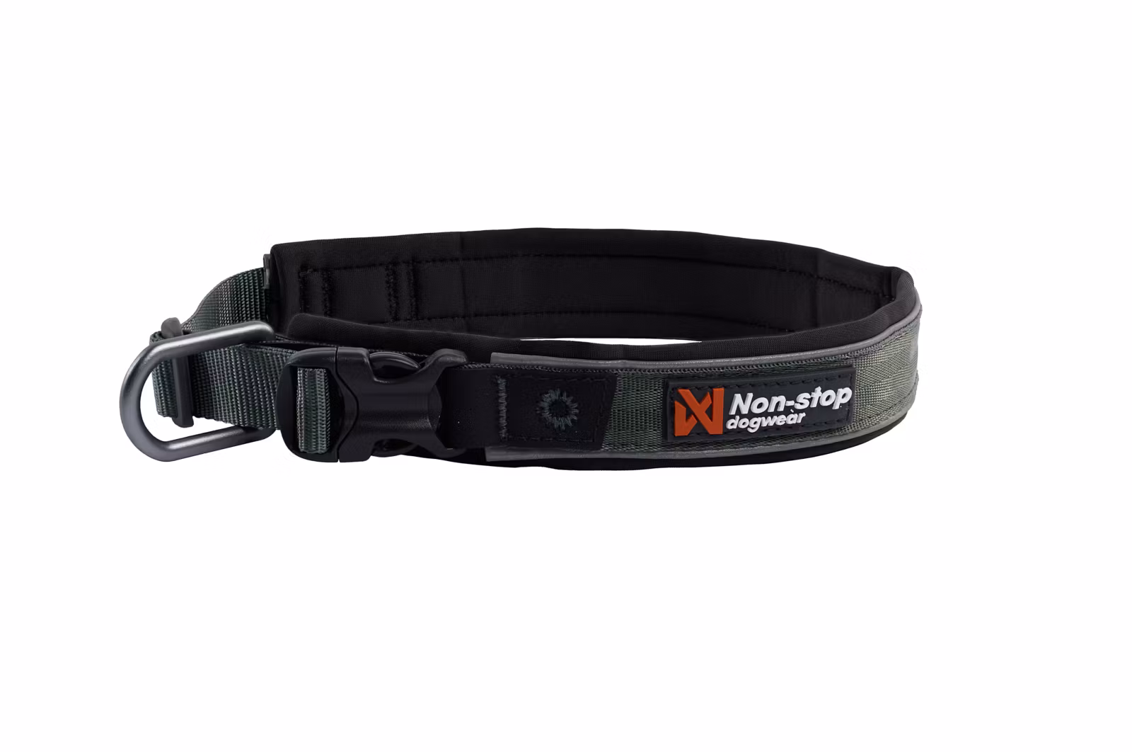 To refleksstriper går rundt hele den polstrede delen av halsbåndet og sørger for god synlighet fra flere vinkler – en viktig sikkerhetsdetalj på kveldsturer og i mørke omgivelser.