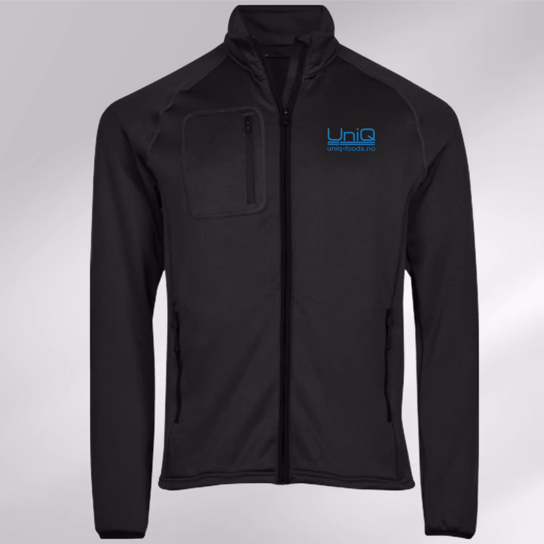 Logo og plassering: Logo UniQ venstre side forran, skrift på arm og full logo bak.
