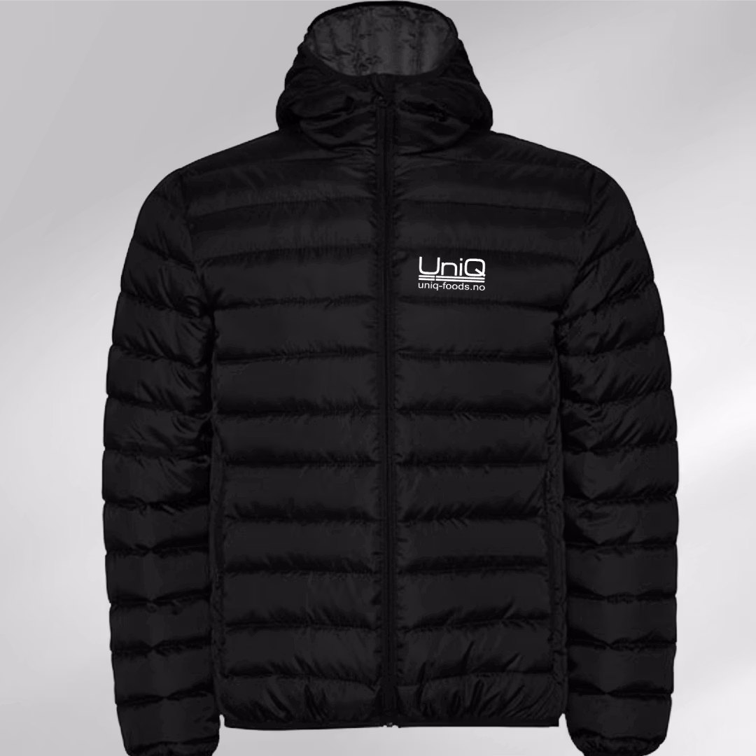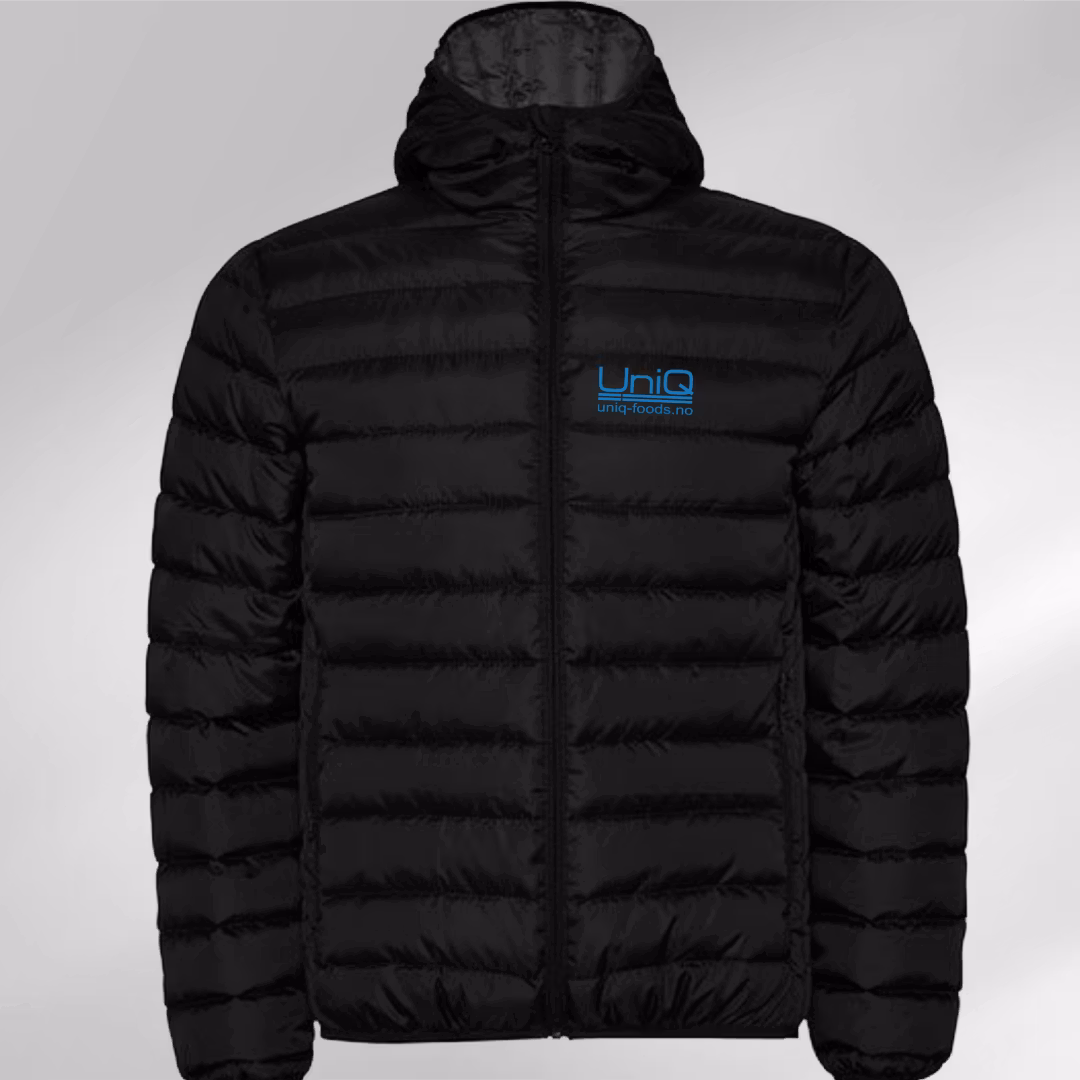 Logo og plassering: Logo med refleks - UniQ venstre side forran og nedre del av jakkens bakside